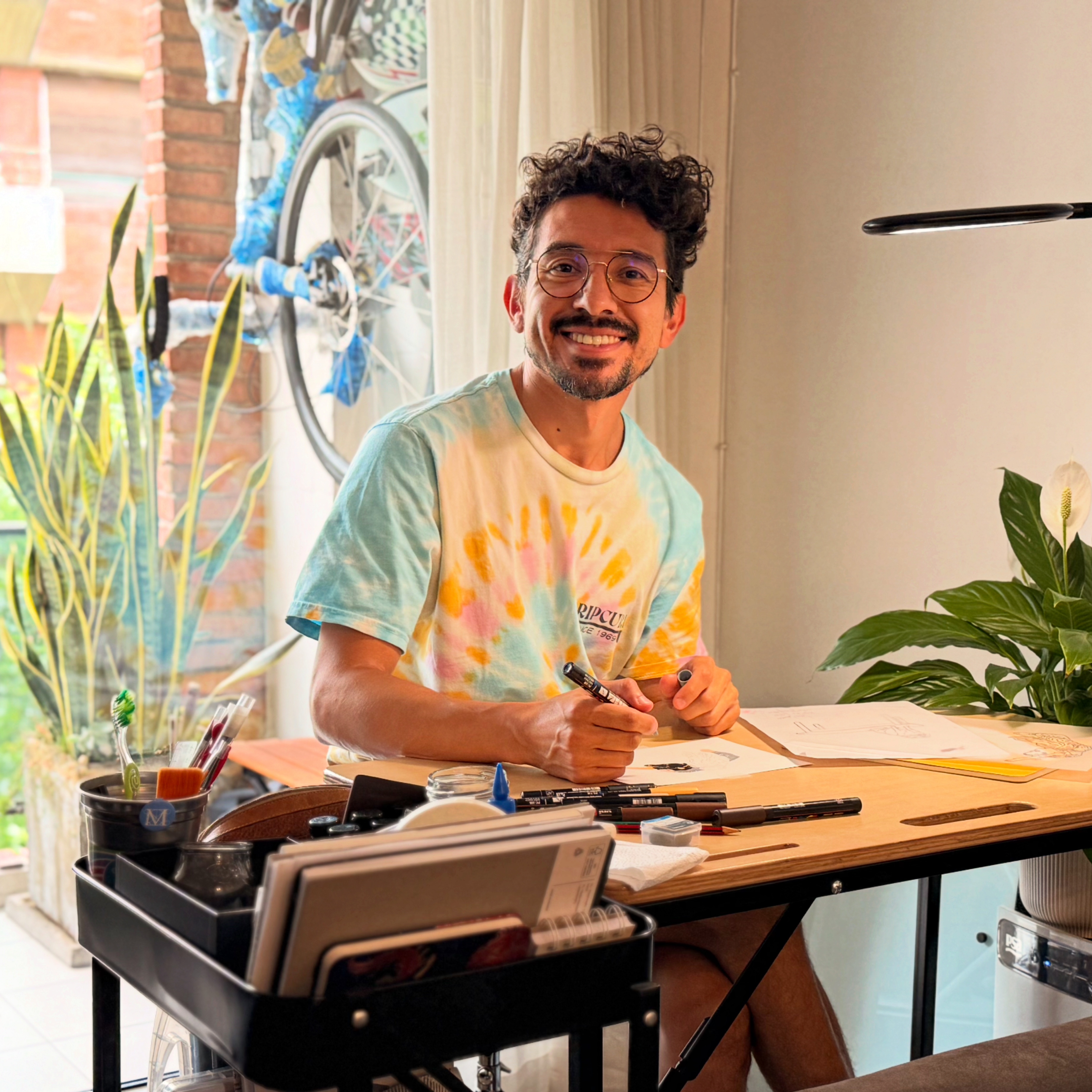Desde pequeño y bajo la influencia de su mamá Bicha, dejó la creatividad formar parte de su vida diaria y realizó todo tipo de expresiones artísticas plásticas, de las que casi no existen evidencias. Luego, ya instalado en Buenos Aires, orientado a su formación exploró tímidamente sus impulsos creativos en una ya inexistente Galería de Arte ubicada en la calle French, de Recoleta. De esa etapa queda poca obra que evidencia su paso por la carbonilla, dibujo, oleo sobre tela y lápiz.
